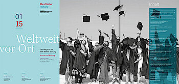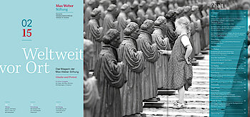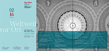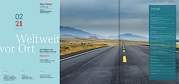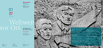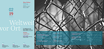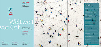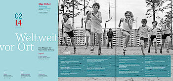 "Weltweit vor Ort", das Magazin der Max Weber Stiftung erscheint zweimal im Jahr. Hier berichten Wissenschaftlerinnen und Wissenschaftler aus der Forschungswelt. In Interviews und Nachrichtenbeiträgen werden die Aktivitäten der Stiftung und die Forschungsergebnisse ihrer Institute anschaulich. Wenn Sie unser Magazin kostenlos per Post erhalten möchten, füllen Sie bitte dieses Formular aus.