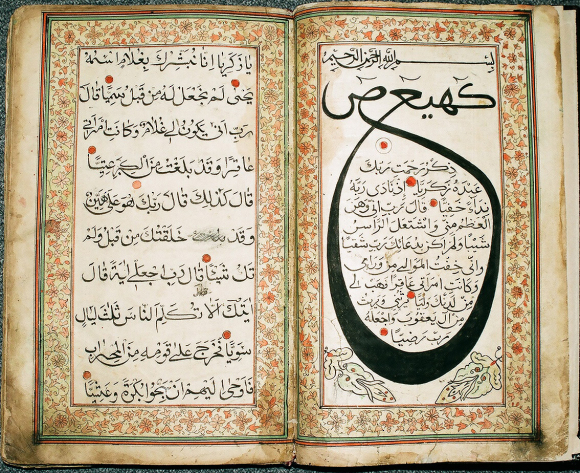 Im Koran ist an vielen Stellen eine große Verehrung des Wortes in mündlicher oder schriftlicher Form zu erkennen, heißt es doch in der ersten nach islamischer Tradition offenbarten Sure: „Trag vor im Namen deines Herrn, der schuf, den Menschen aus Anhaftendem schuf! Trag vor! Denn dein Herr ist’s, der hochgeehrte, der mit dem Schreibrohr lehrte, den Menschen, was er nicht wusste, lehrte.“ (Sure 96, 1-5, Übersetzung Hartmut Bobzin). Aus dieser Aufforderung wurden in den weiteren Jahrhunderten der islamischen Kulturgeschichte zwei große Künste geboren: die Rezitationskunst und die Schreibkunst. Doch auch unterhalb der Wortebene fordert der Koran zu einer näheren Beschäftigung mit dem Wort (Gottes) heraus. Zu Beginn von 29 der insgesamt 114 Suren befinden sich die sogenannten „geheimnisvollen Buchstaben“ (arab. „die Abgetrennten/al-muqaṭṭaʿāt“), deren Bedeutung bis heute nicht geklärt ist und Anlass für viele Spekulationen war: Handelt es sich hierbei um Abkürzungen von Worten oder Gottesnamen, um Hinweise auf ihre Besitzer, um Trennzeichen zwischen den verschiedenen Suren, um Zahlenwerte – oder soll durch diese Einzelbuchstaben lediglich die Besonderheit der Buchstaben an sich demonstriert werden?