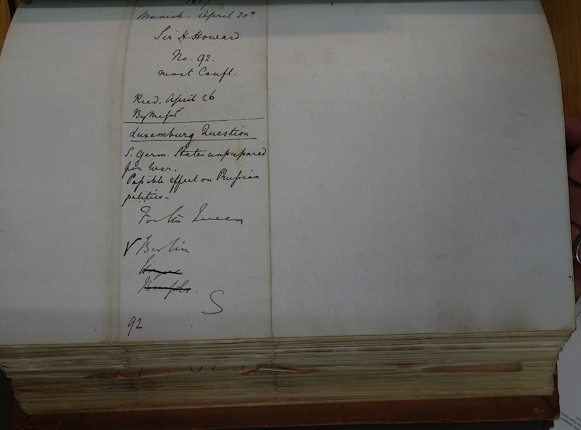 Über kaum ein anderes Land war das Londoner Foreign Office im 19. Jahrhundert besser unterrichtet als über Deutschland. Dies lag weniger an Deutschlands Rolle im Konzert der europäischen Mächte oder an den engen dynastischen Verflechtungen mit Großbritannien, sondern an der gleichzeitigen Entsendung zahlreicher britischer Diplomaten in die verschiedenen deutschen Einzelstaaten. Von dort berichteten die britischen Gesandten oftmals mehrmals wöchentlich, manchmal sogar mehrmals täglich. Die Originale dieser Depeschen liegen in den National Archives in Kew bei London.